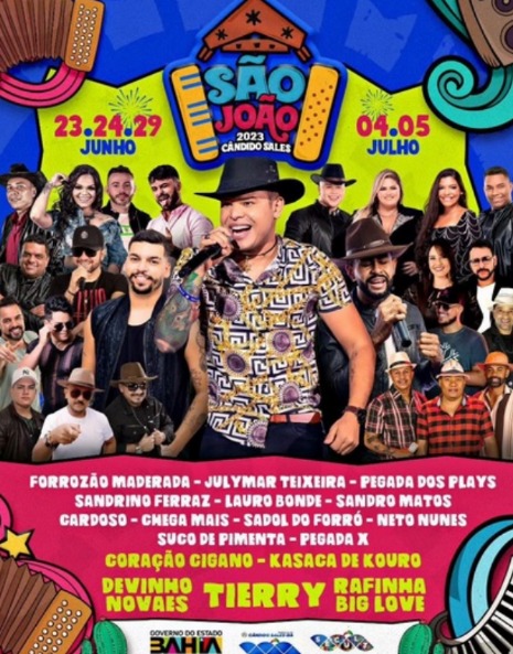 A festa junina de São João de Cândido Sales atrai turistas de diversas partes do país, Durante o mês de junho, a cidade é decorada com bandeirolas, balões e fogueiras, criando um ambiente de muita alegria e diversão. A festa acontecerá nos dias 23, 24 e 29 de junho e 04 e 05 de julho. Os shows serão por conta de Forrozão Maderada, Julymar Teixeira, Pegada dos Plays, Sandrino Ferraz, Lauro Bonde, Sandro Matos, Cardoso, Chega Mais, Sadol do Forró, Neto Nunes, Suco de Pimenta, Pegada X, Coração Cigano, Kasaca de Kouro,Deivinho Novaes, Rafinha Big Love e Tierry a atração mais esperada se apresentará no dia 05/07/2023.