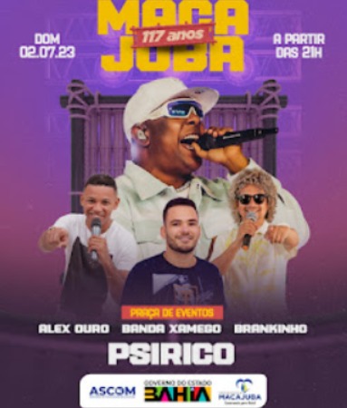 Macajuba realizará mais um festejos na cidade dia 02 de Julho de 2023, e para comemorar essa data tão especial, a Prefeitura de Macajuba com o apoio do Governo do Estado da Bahia, através da Superintendência de Fomento ao Turismo promoverá um evento festivo na Praça de Eventos com atrações musicais.