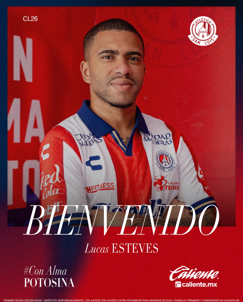 “O Club Atlético de San Luis anuncia que o defensor Lucas Esteves é a nova adição ao time de Potosí para o torneio Clausura 2026, vindo do Grêmio do futebol brasileiro. Lucas Esteves, lateral-esquerdo de 25 anos, iniciou sua carreira no Palmeiras, clube onde fez sua estreia profissional e apresentou um crescimento significativo. Bem-vindo!”, publicou o San Luis.