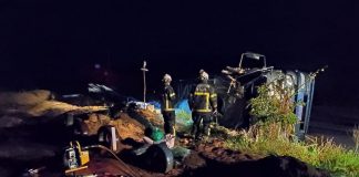 Mulher morre após caminhão onde estava tombar em rodovia do sul...