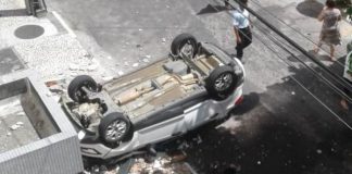 Carro despenca de garagem de hotel em Feira de Santana