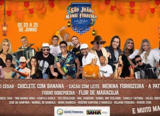 Foi divulgada oficialmente a grade da edição de 2023 do São João de Muniz Ferreira que acontecerá entre os dias 23 a 25 de junho.
